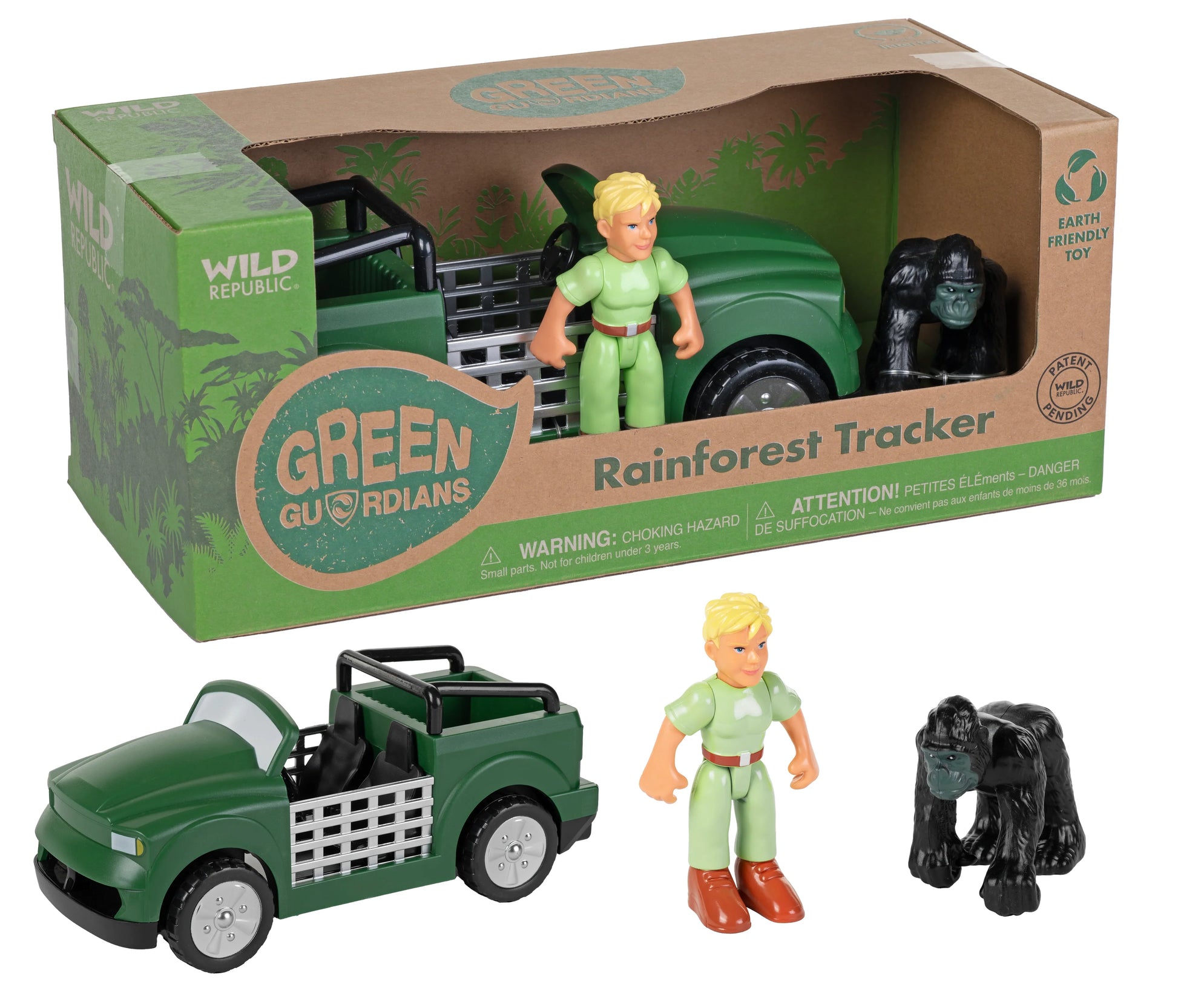 Ce jouet est noté comme un "EARTH FRIENDLY TOY" (Jouet Écologique) sur la boîte. Il fait partie de la ligne Green Guardians de Wild Republic, qui est conçue avec une approche durable.
